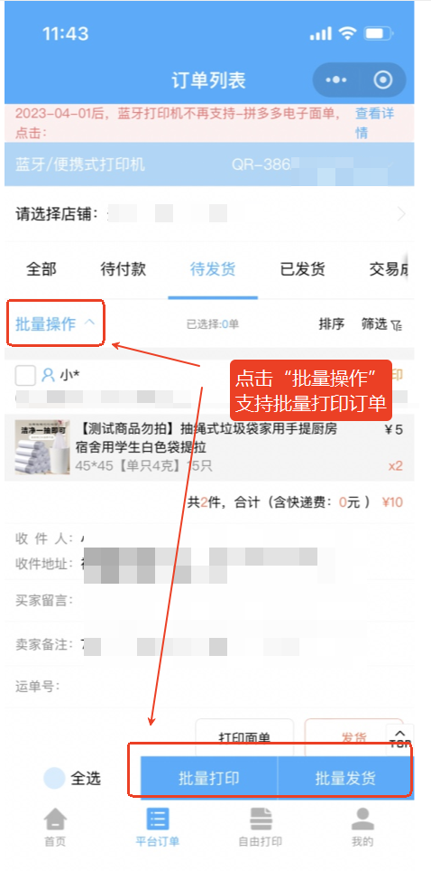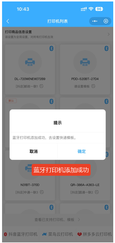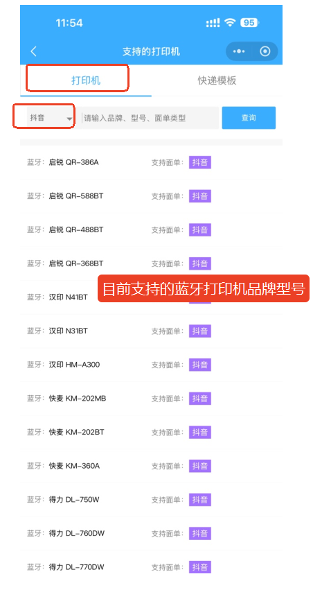 (注意:抖音订单只能使用蓝牙打印机打印;)