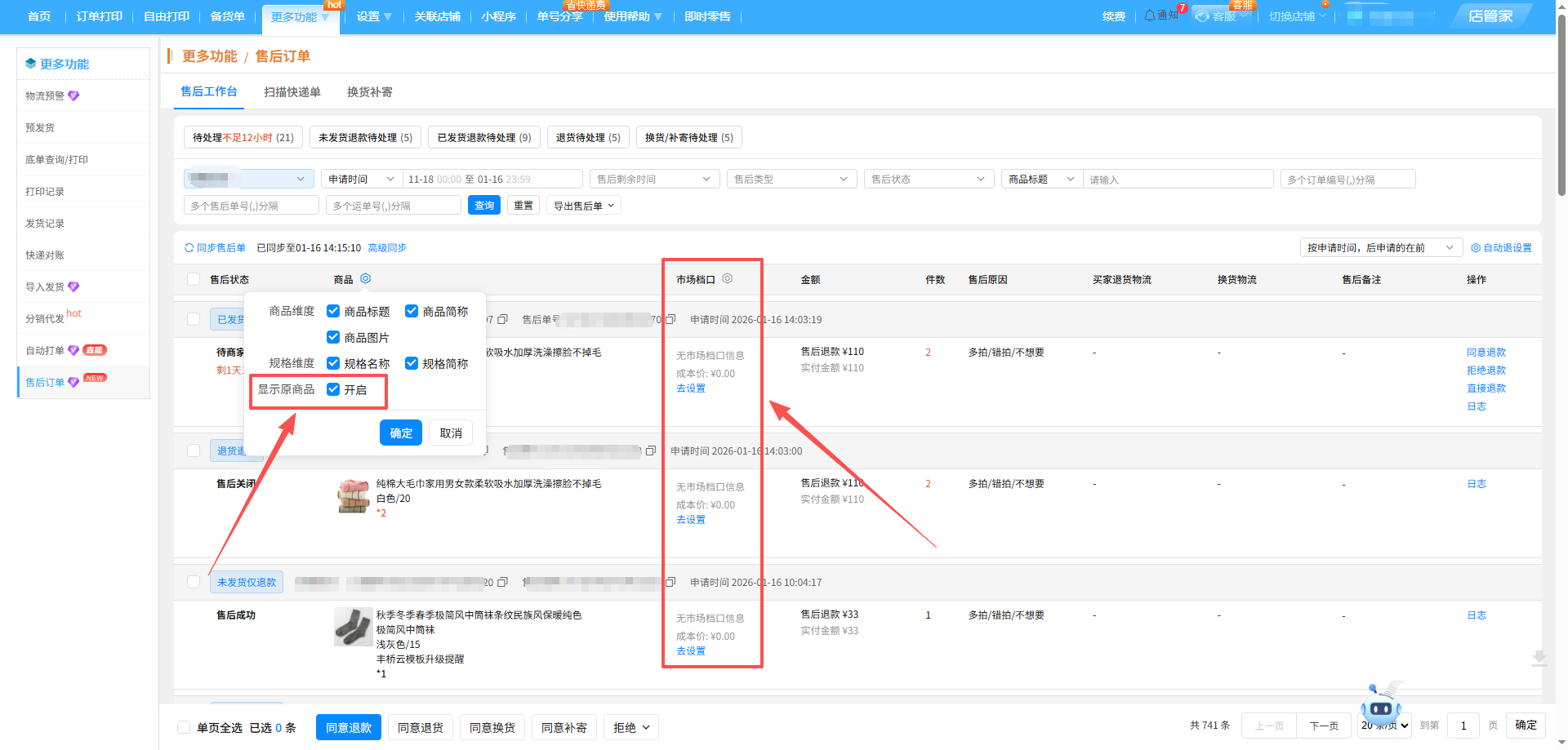 1.多店铺售后订单要分店铺查询,来回切换店铺效率低下;