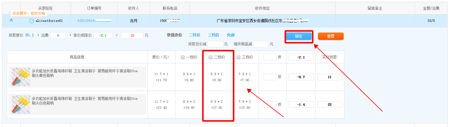 展开订单,除了可以直接勾选三档价之外,还要再减价,可以直接改下要减多少的价格,系统会自动改好价格。