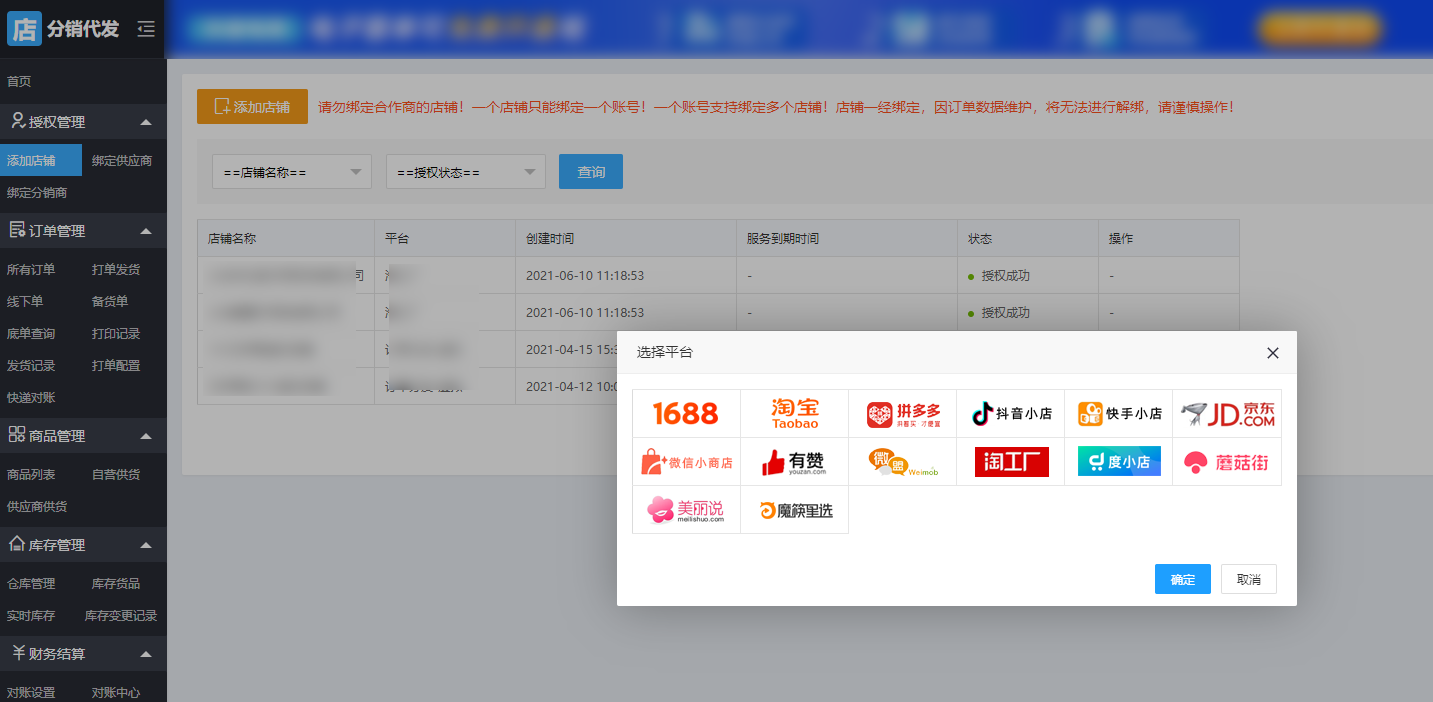 第一步:进入店管家官网 (http://www.dgjapp.com ),选择分销代发,添加抖音小店,完成商品订单同步。