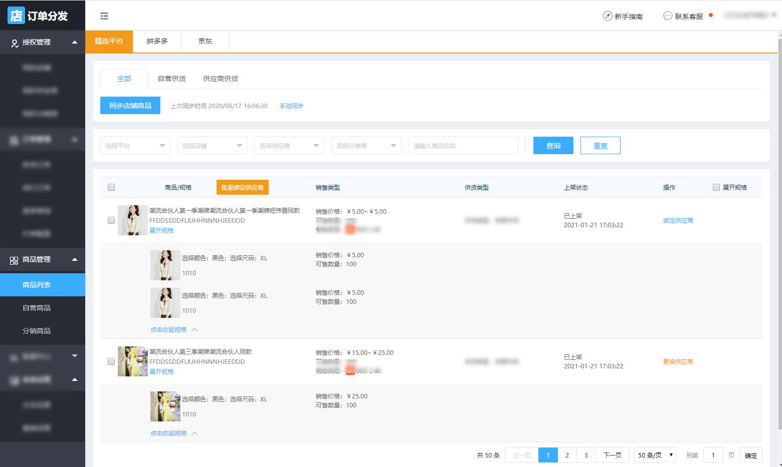 第三步:绑定店铺授权,绑定供应商或分销商,同步店铺商品。商品绑定对应供应商。